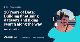 Ein besonderes Highlight ist der Vortrag unseres Mitarbeiters Konrad Handrick am Freitag, 8. Mai 2026. Unter dem Titel „20 Years of Data: Building finetuning datasets and fixing search along the way“ gibt er praxisnahe Einblicke in den Umgang mit gewachsenen und oft fragmentierten Unternehmensdaten.