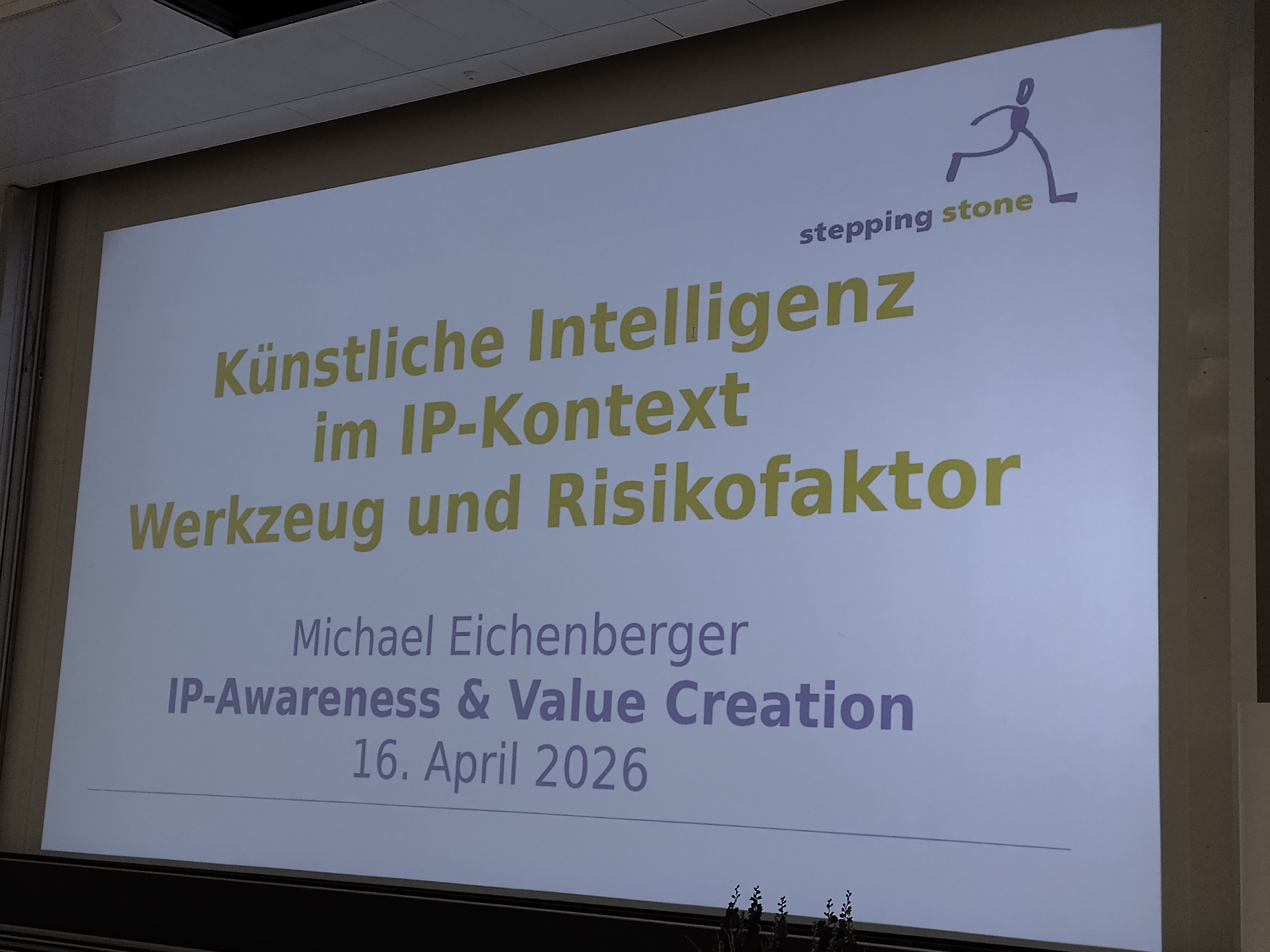 Im Rahmen des Programms hielt unser CEO Michael Eichenberger einen Vortrag zum Thema: „Künstliche Intelligenz im IP-Kontext – Werkzeug und Risikofaktor“