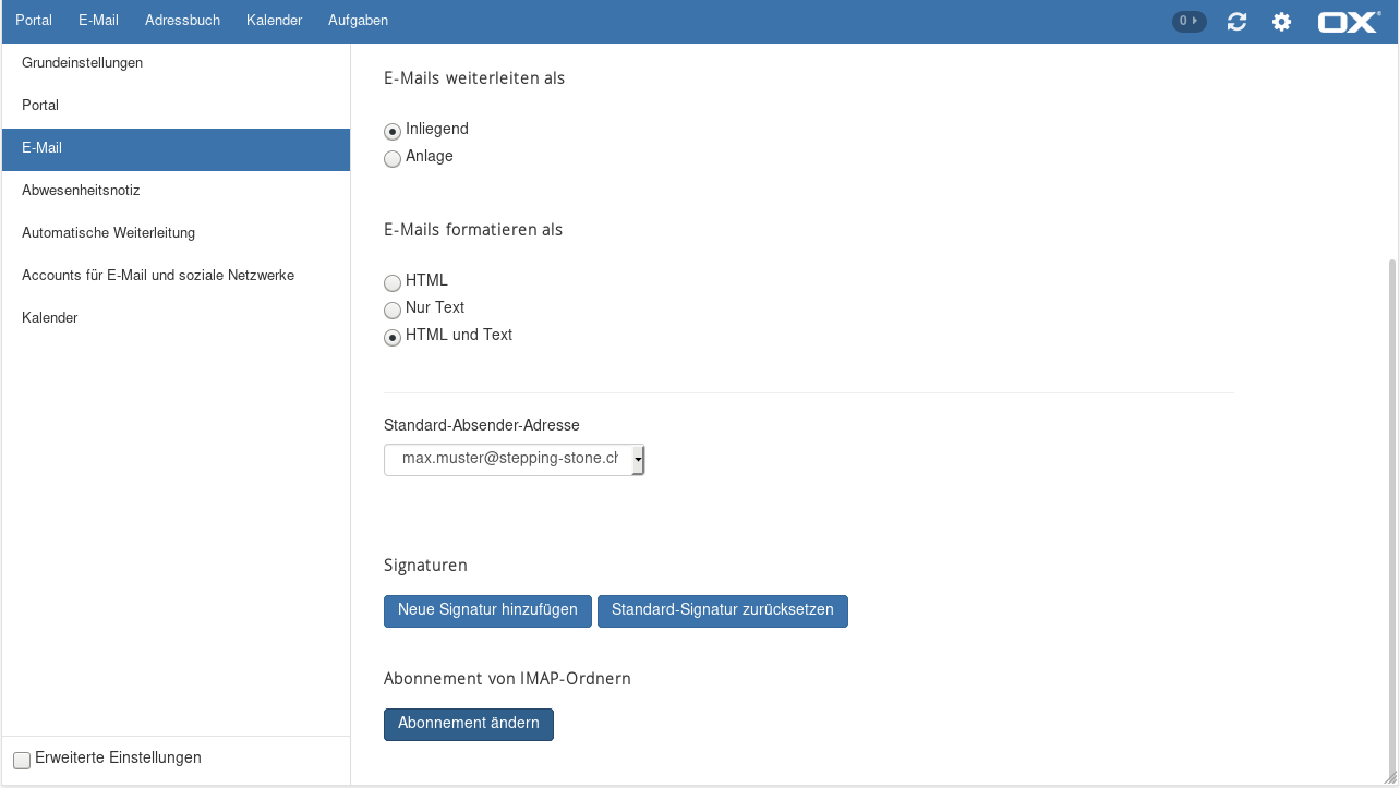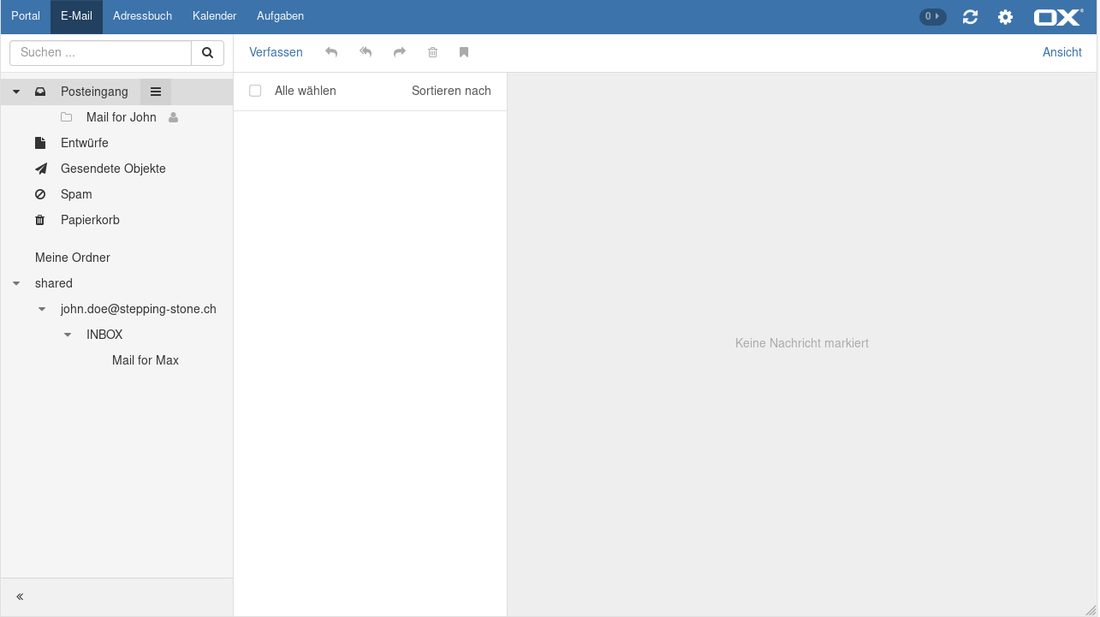 Wenn Sie E-Mails für interne Benutzer zur Verfügung stellen möchten, gehen Sie folgendermassen vor: