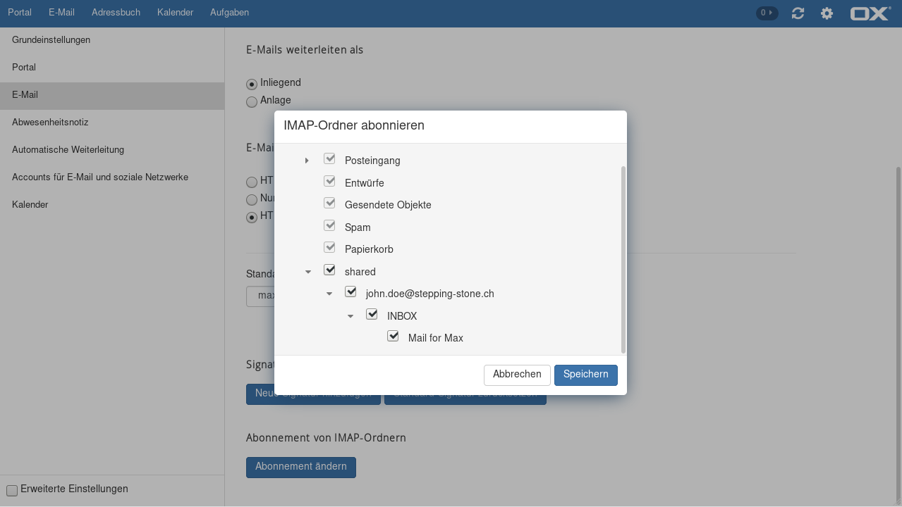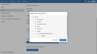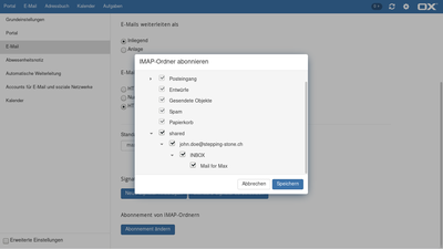 Um freigegebene E-Mail-Ordner anderer Benutzer zu sehen, müssen Sie diese Ordner abonnieren.