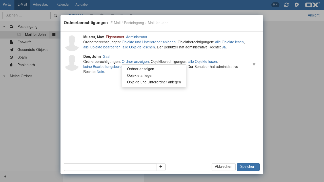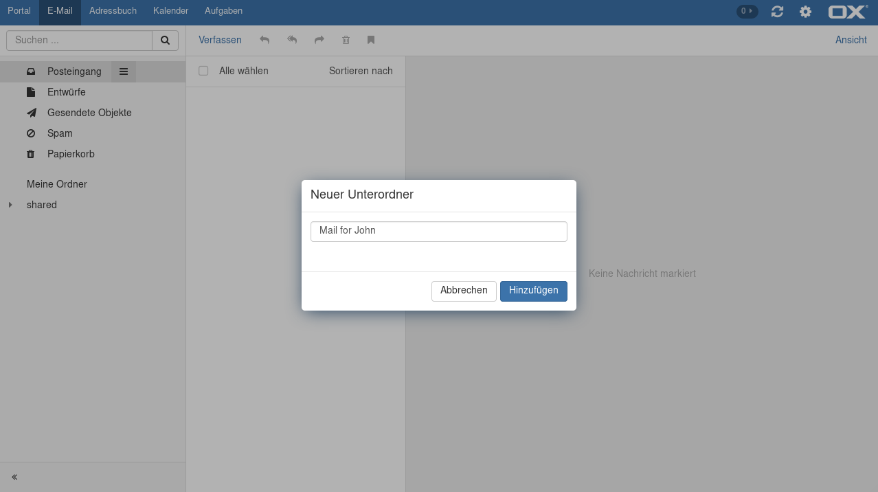 Sie können Ihre E-Mails mit internen Benutzern teilen.