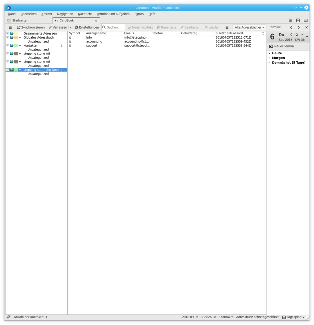 Ihr Adressbuch in Thunderbird Client ist nun eingerichtet.