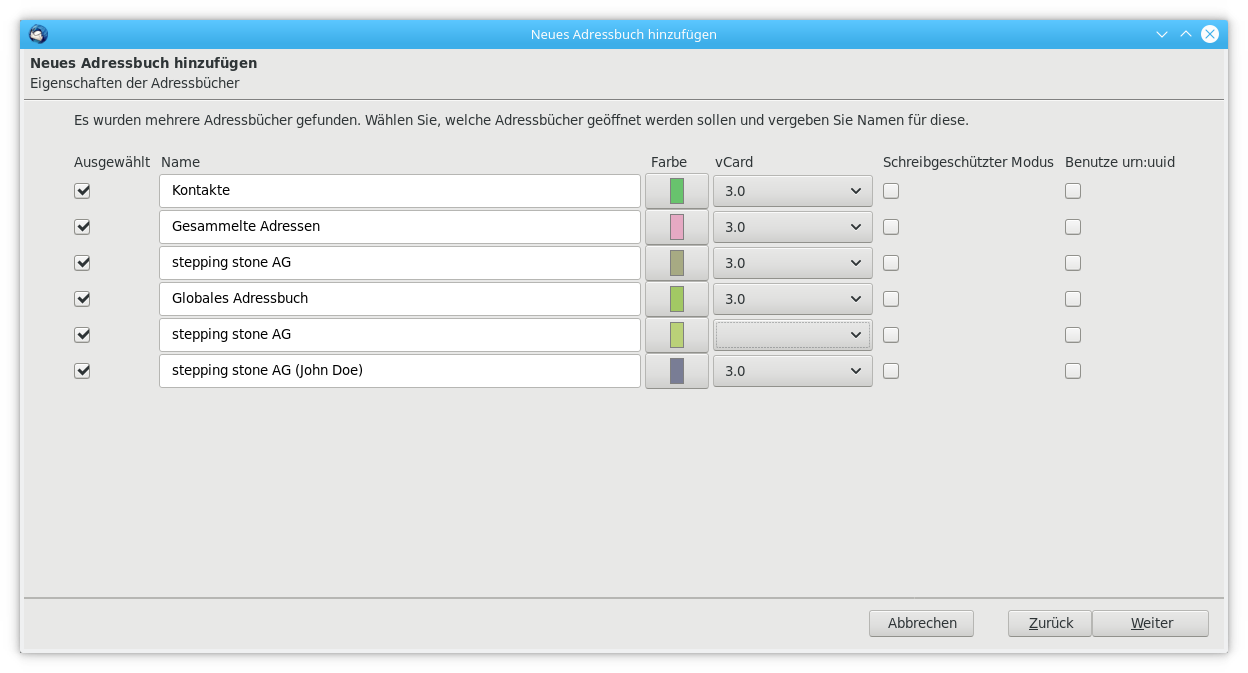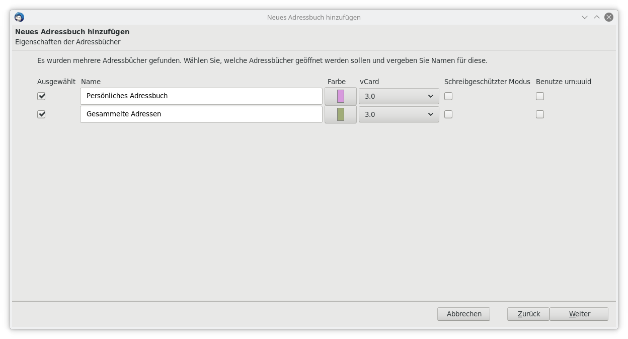 Wählen Sie die Addressbücher aus, welche Sie synchronisieren möchten.