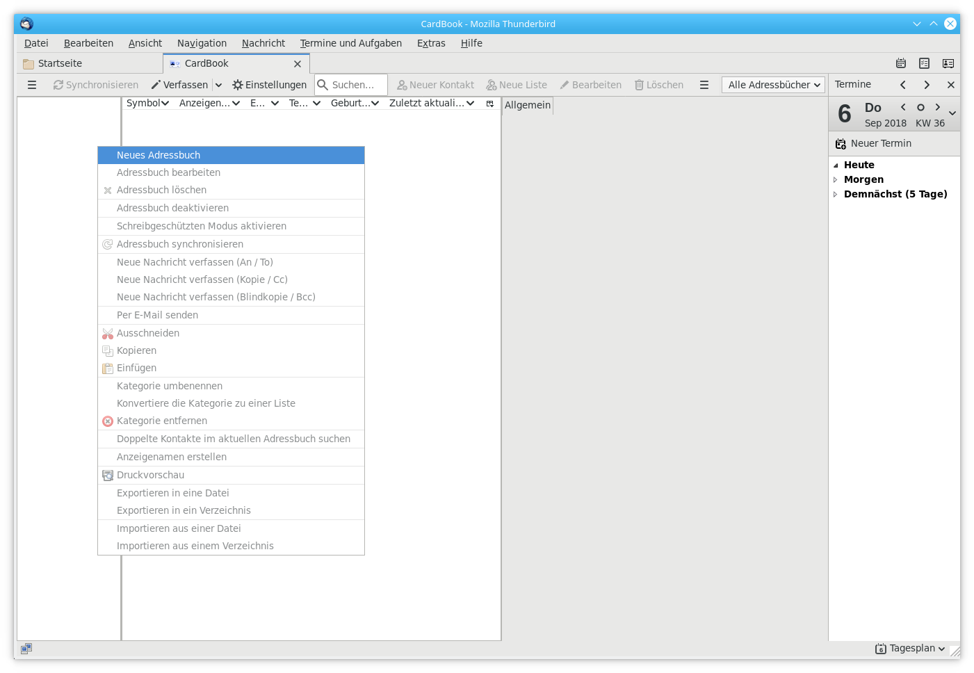 In den folgenden Schritten zeigen wir Ihnen, wie Sie Ihre Groupware Kontakte im Thunderbird Client anzeigen können und welche Einstellungen Sie machen müssen, damit die Synchronisation mit Groupware funktioniert.