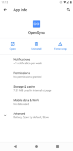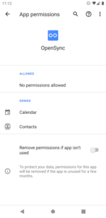 The Permissions of the OpenSync app need to be changed, so that the calendar and the contacts can be synchronized.