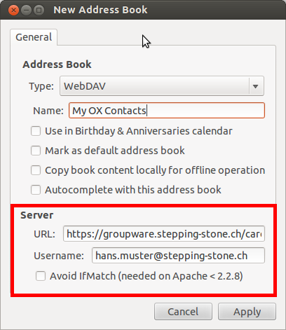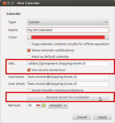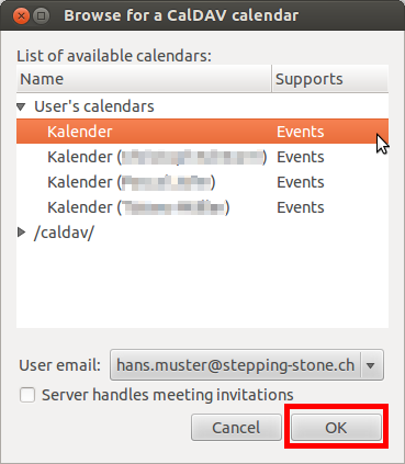 Followed by clicking on "Browse server for a calendar" to browse for the correct calendar.