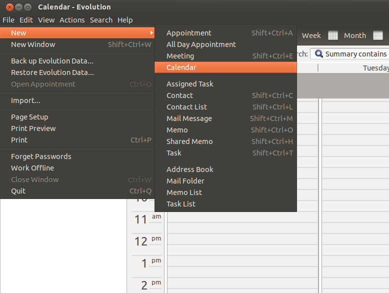 Create a new calendar. Click in the menu "File" on "New" followed by "Calendar".
