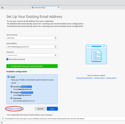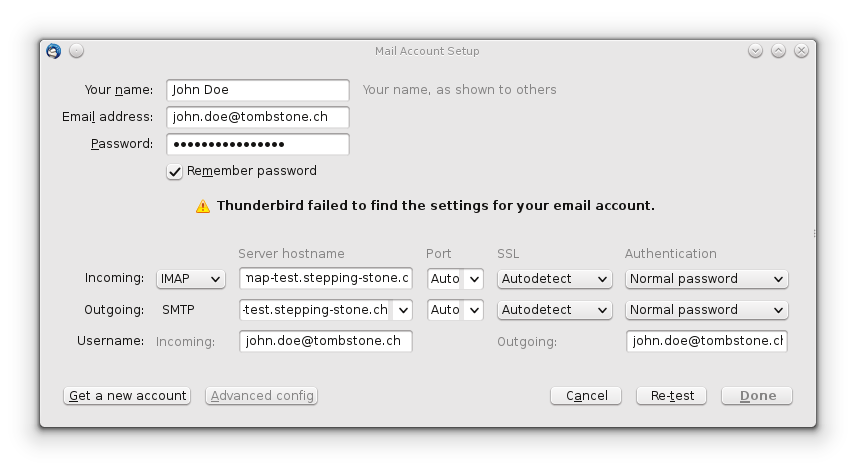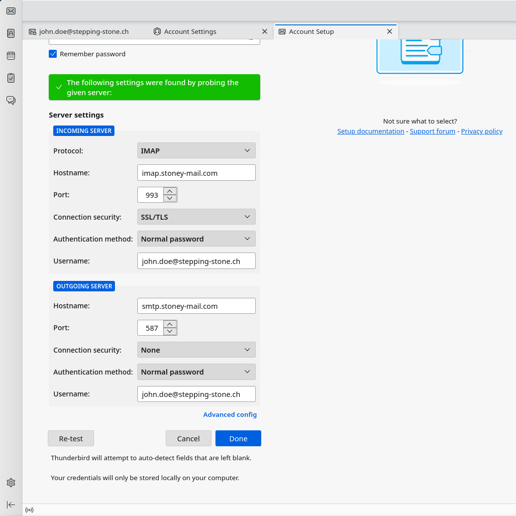 Your Thunderbird Client is now configured correctly. Test your account by sending yourself an email.