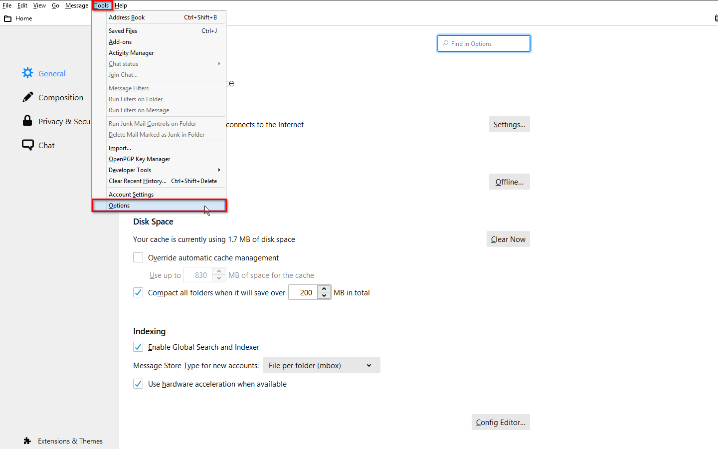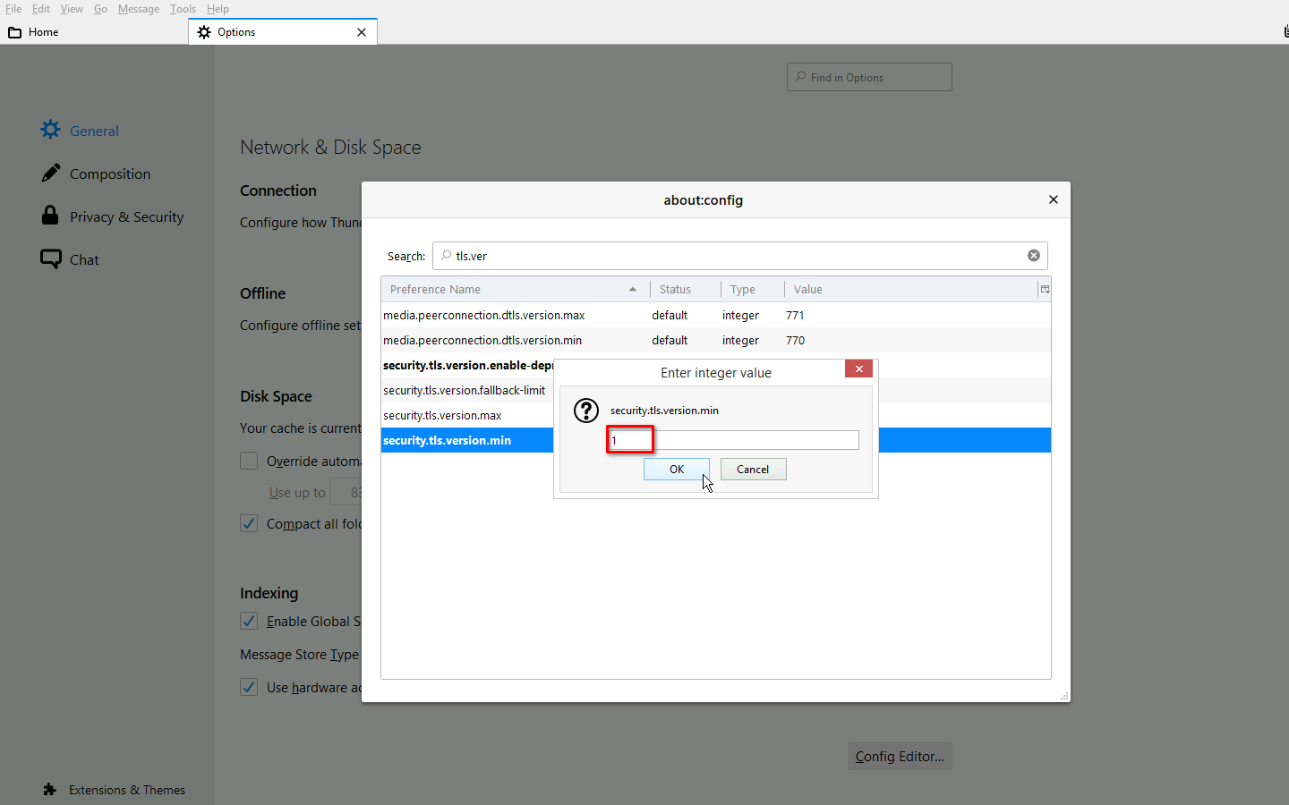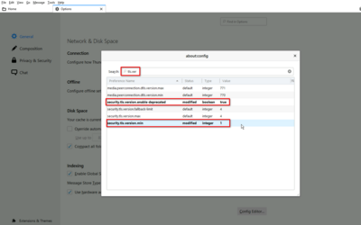 Currently, to connect to our IMAP server, support for TLS version 1.0 has to be activated as it is deactivated by default in Thunderbird version 78 and newer..