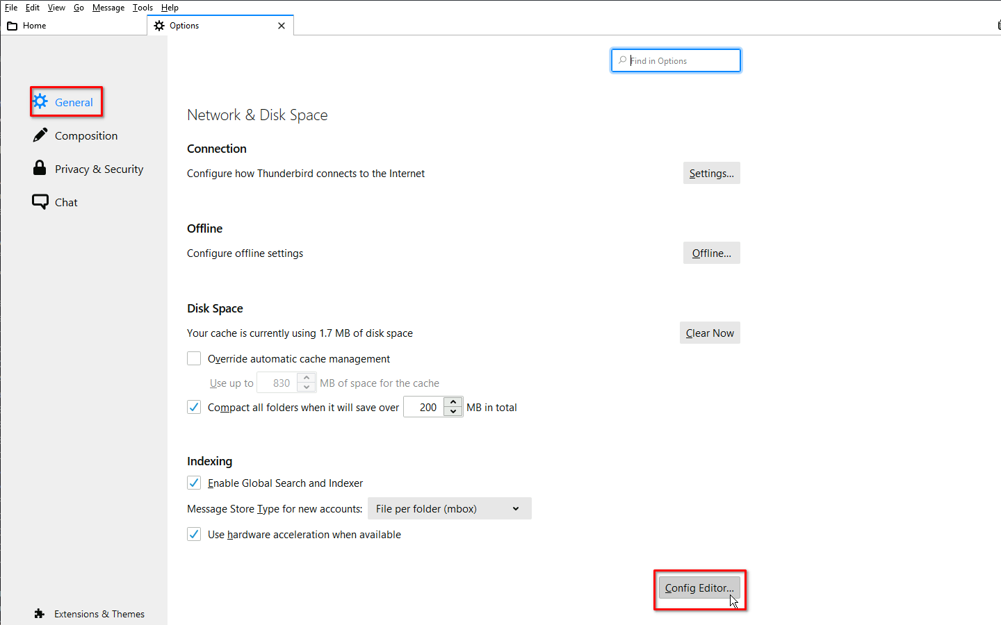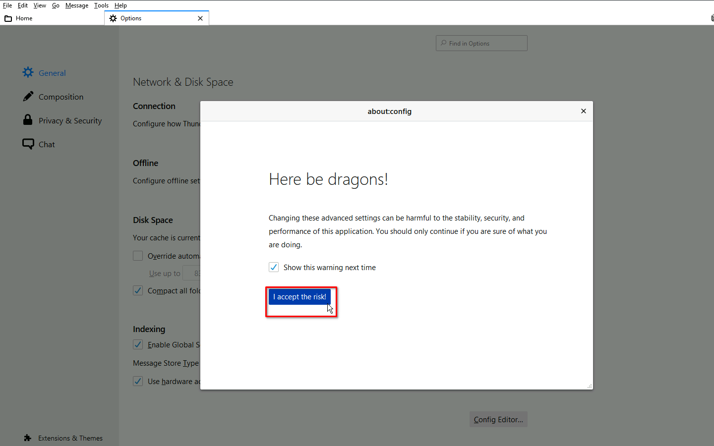 Now scroll all the way down with the mouse until you see the option "Config Editor...".