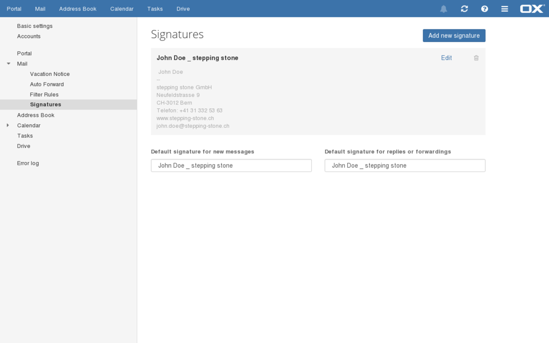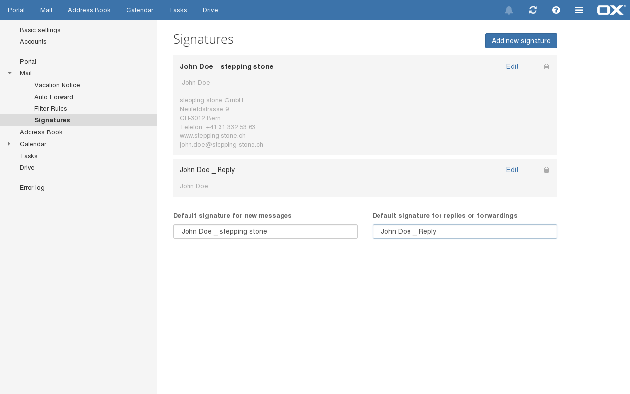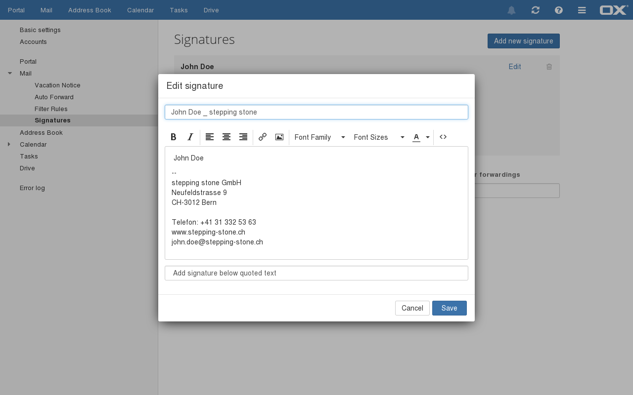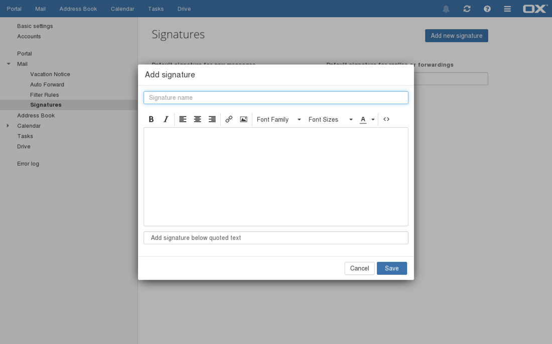 Place of Signature Choose whether the Signature will be inserted at the beginning or the end of the e-mail.