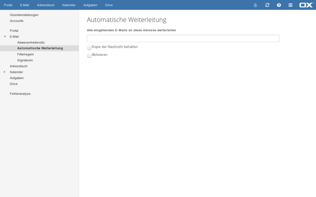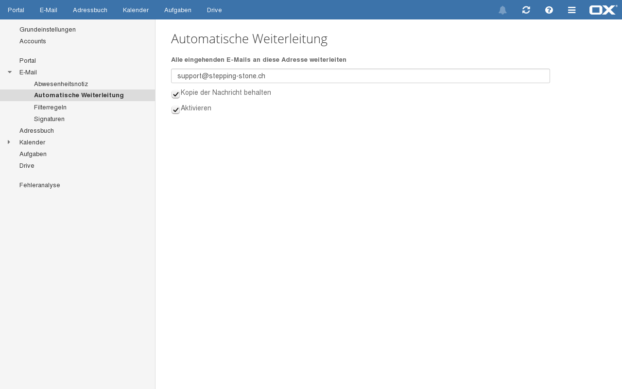 Aktivieren Aktivieren Sie hier das automatische Weiterleiten.