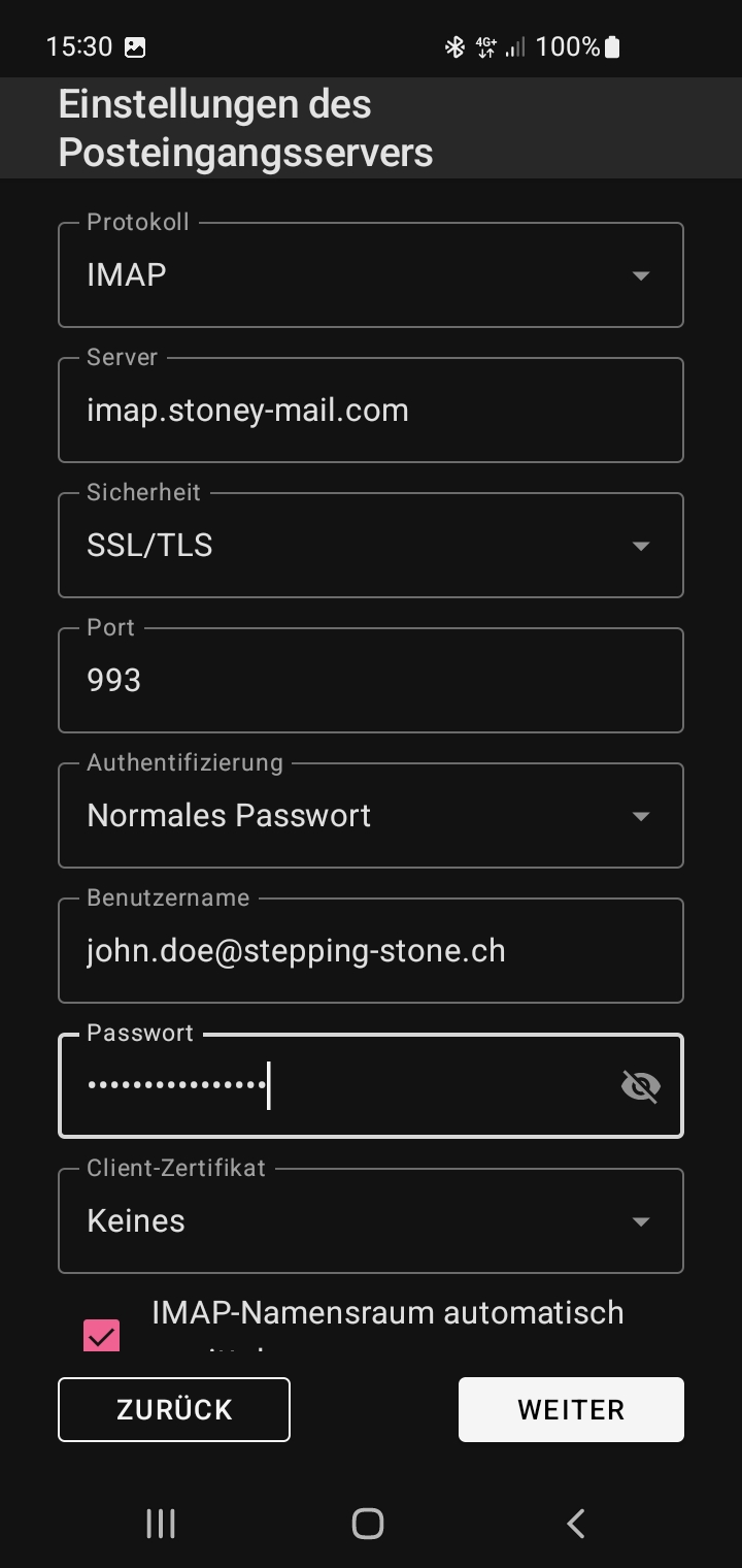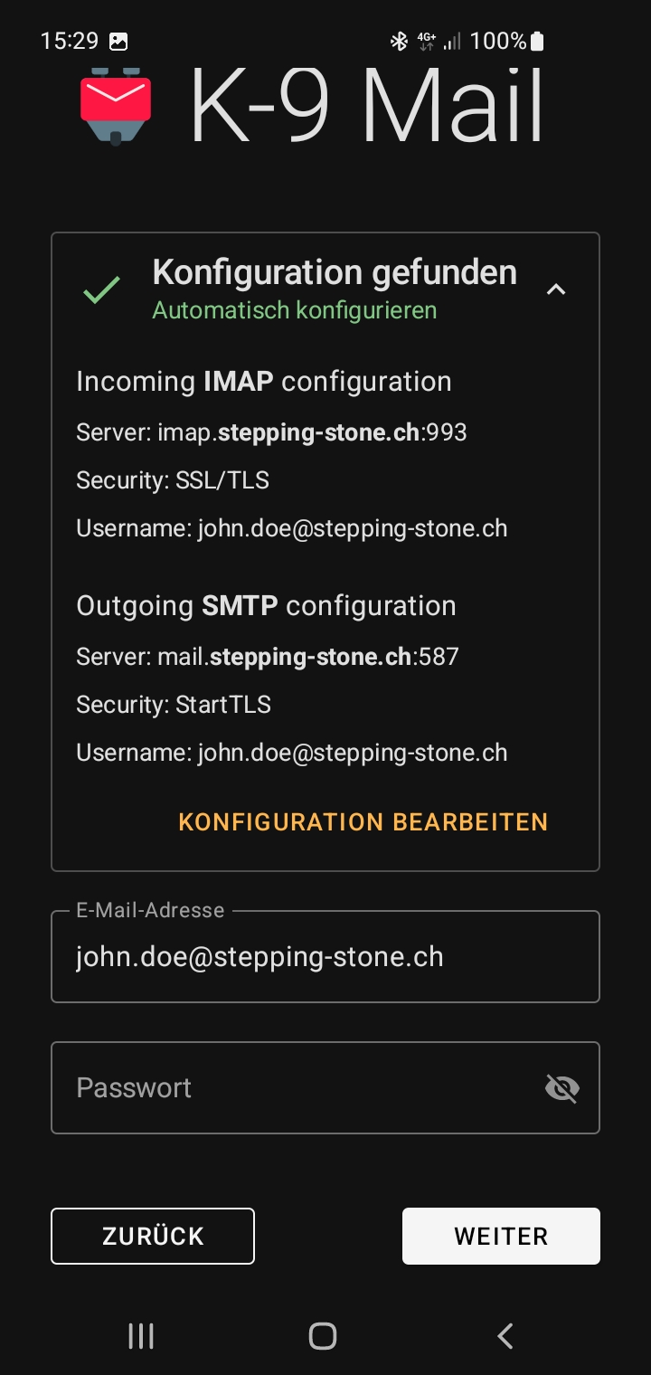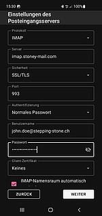 Die genaue Einstellungen finden Sie in der Web-Ansicht Ihren E-Mail. Melden Sie sich online an und klicken Sie in der Menü-Liste auf "Einstellungen". Im Menü links klicken Sie auf "Accounts", dann auf "E-Mail bearbeiten". Hier finden Sie die Einstellungen für eingehende und ausgehende Mail. Behalten Sie diese Informationen auf der Seite bei Ausführung der folgenden Schritten.